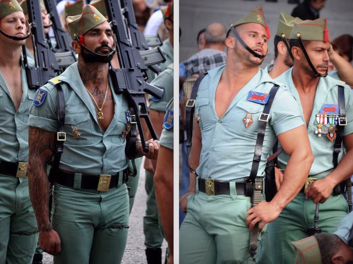 Οι εικόνες, οι οποίες υπάρχουν εδώ και τουλάχιστον δέκα χρόνια, σύμφωνα με μια ανάρτηση στο φόρουμ του Gentlemen’s Military Interest Club, απεικονίζουν σωματώδεις στρατιώτες με την παραδοσιακή στολή της Ισπανικής Λεγεώνας, μια ελάχιστα καλυπτική στολή που κάποτε συνδεόταν με τον φασισμό και τη βία υπό την εξουσία του διαβόητου δικτάτορα στρατηγού Φρανσίσκο Φράνκο.